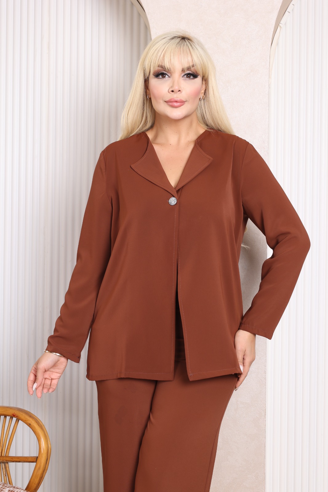 Kadın Büyük Beden Kahverengi İkili Çeket Takım