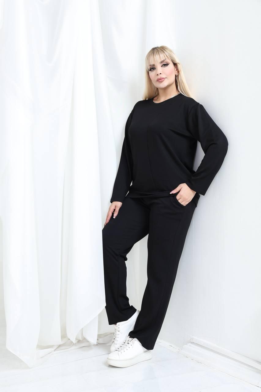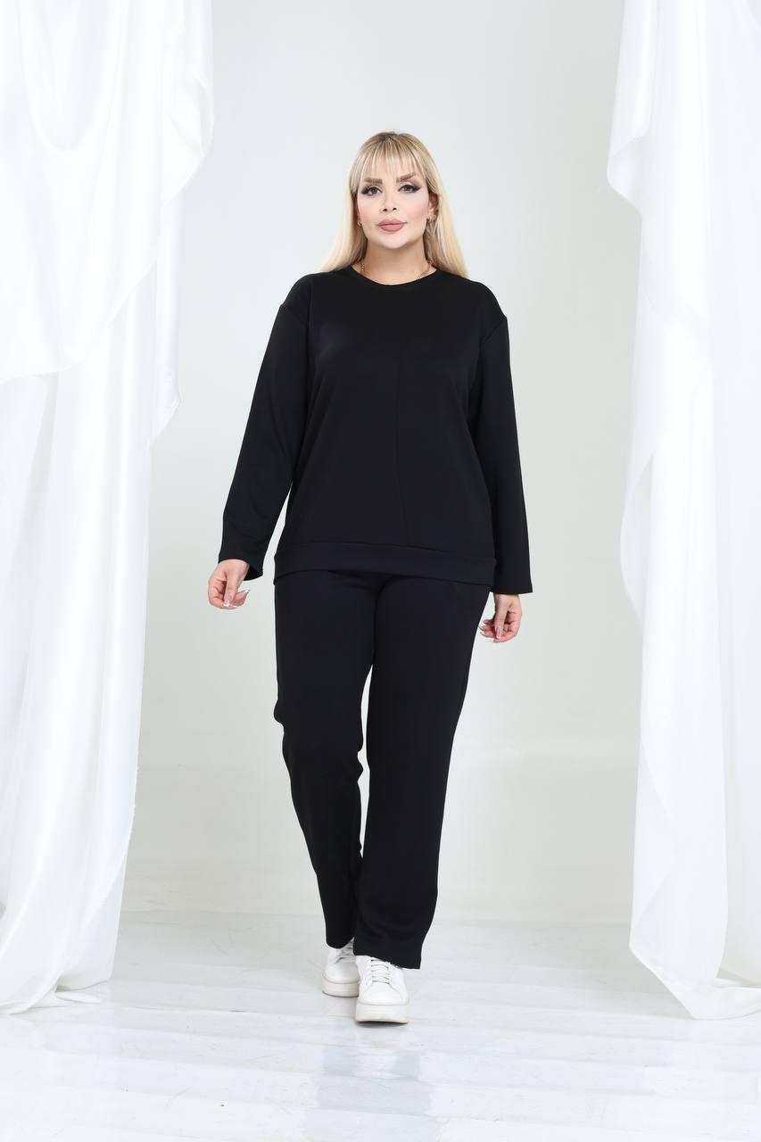 Kadın Büyük Beden Uzun Kollu Rahat Günlük Takım Siyah