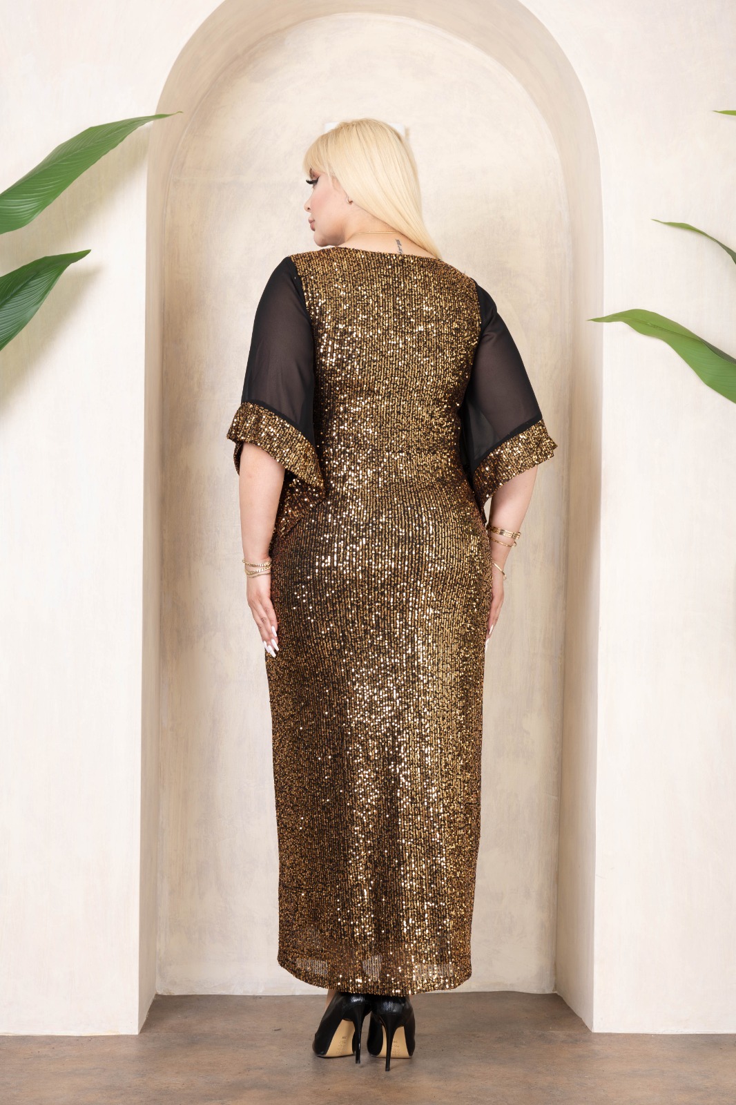 Kadın Gold Büyük Beden Maxi Boy Abiye Elbise