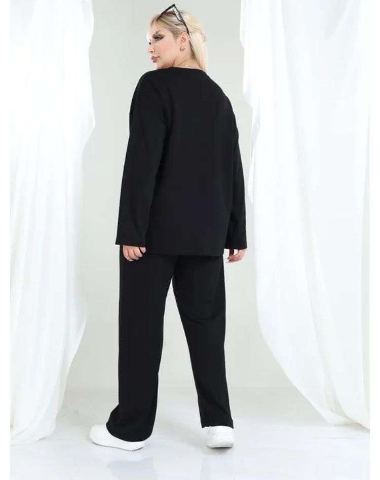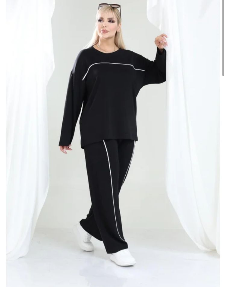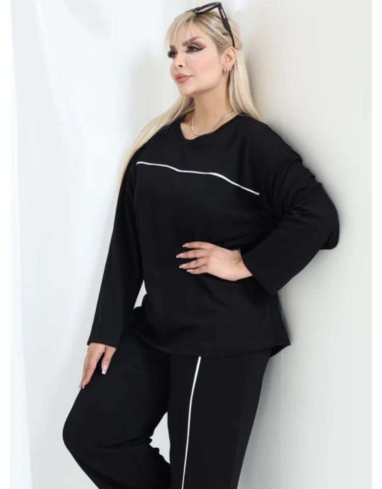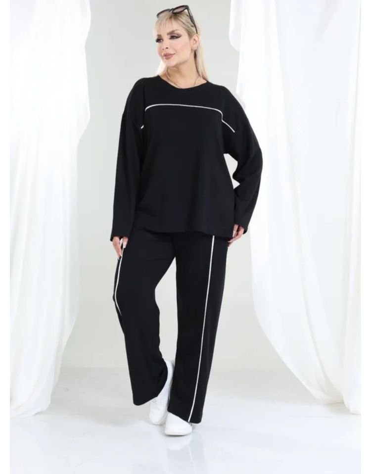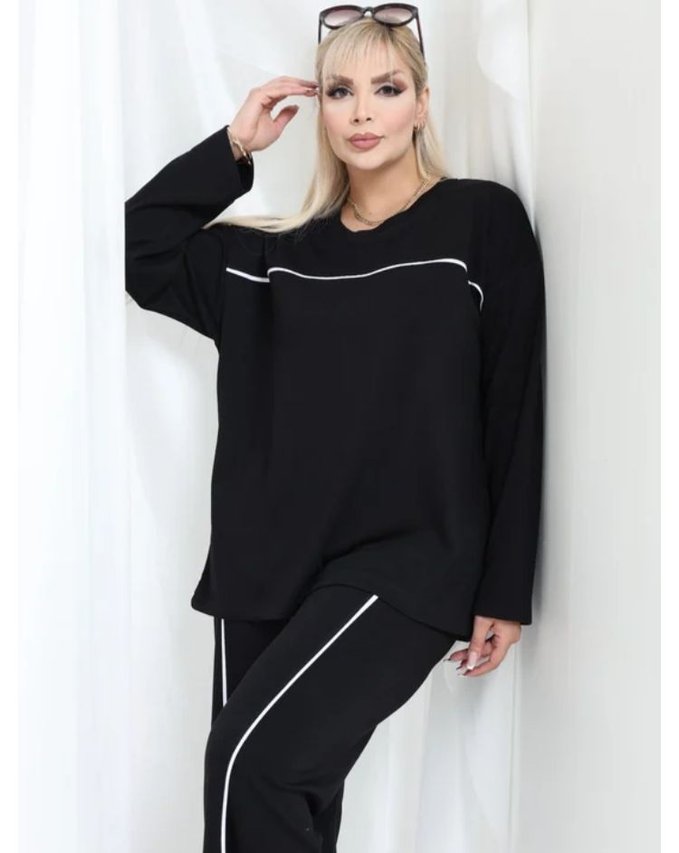 Modal kumaş Uzun Kollu Biye Detaylı Rahat Kalıp Spor Günlük Eşofman Takım Oşho