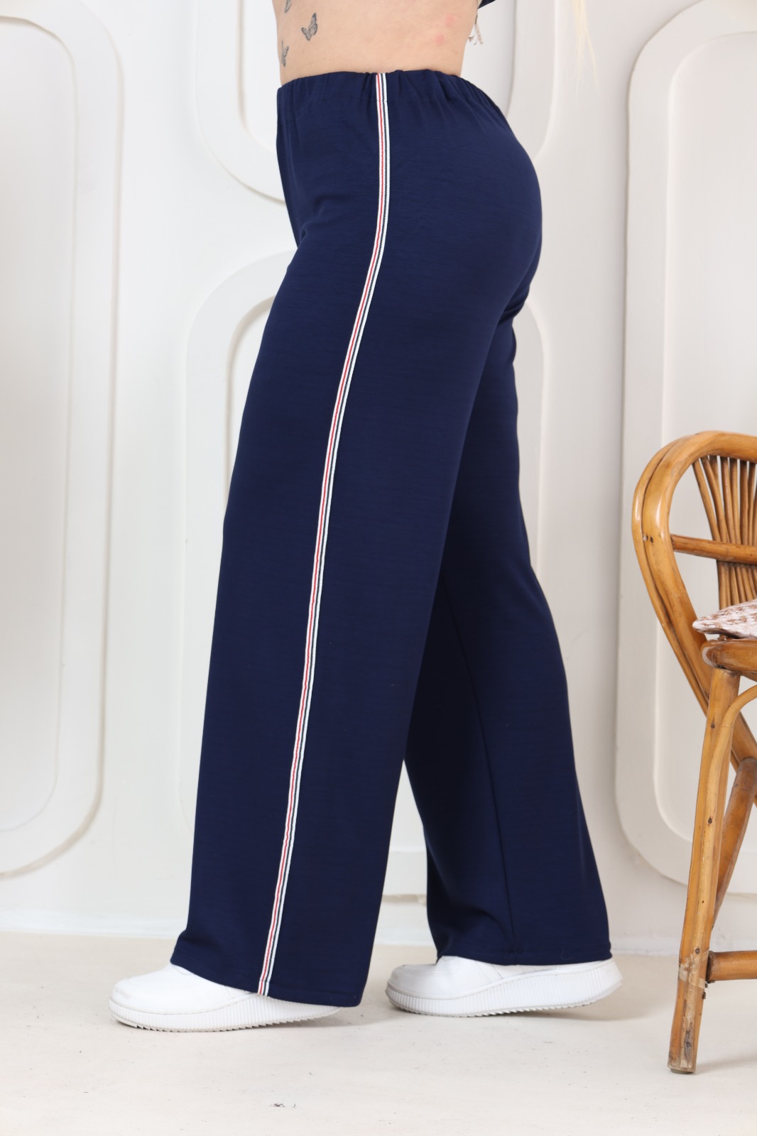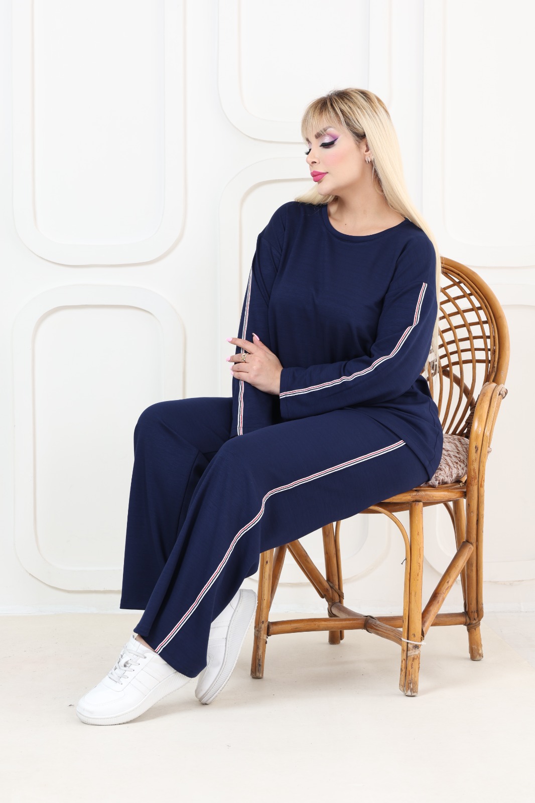 Oşho kumaş Uzun Kollu Biye Detaylı Rahat Kalıp Spor Günlük Eşofman Takım Lacivert